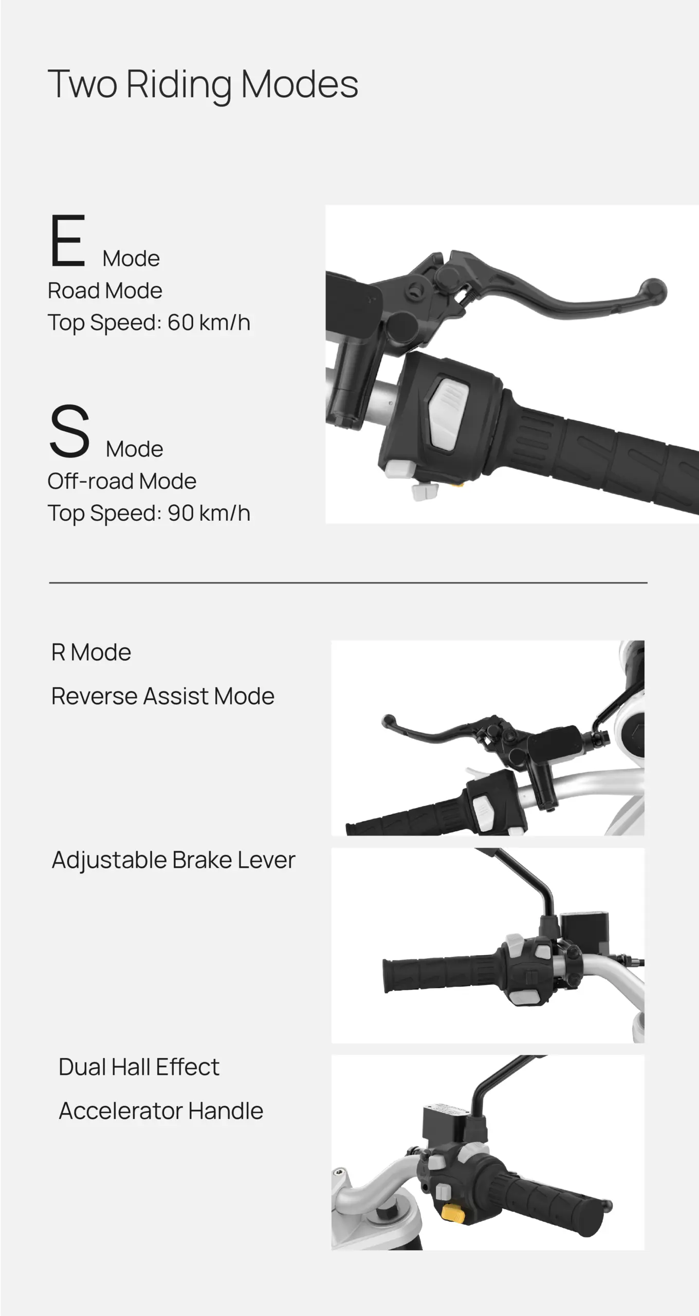 This model is perfect for riders seeking a powerful and versatile electric motorcycle. Its advanced design and experience make it suitable for both city commutes and off-road adventures.